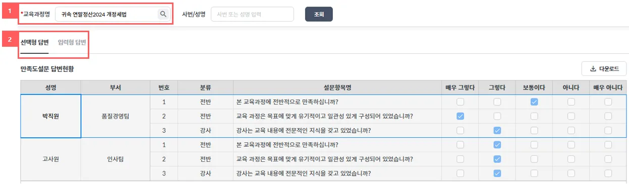 ① 교육결과보고에 등록된 설문항목 순서 설정