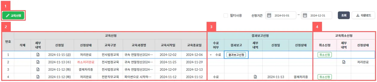③ 교육신청 이후 수료/미수료 관리 및 교육결과보고 신청