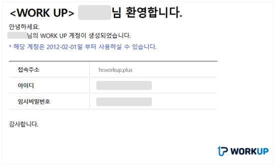 워크업 접속 방법과 계정 정보는 아래와 같은 형식으로 이메일 발송됩니다.