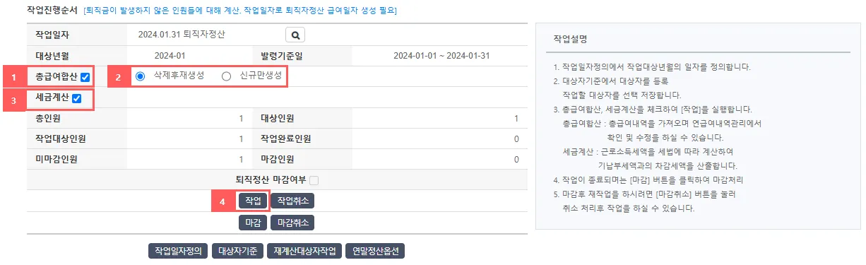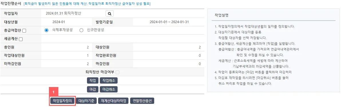 ② 연말정산, 퇴직정산 작업 구분을 확인