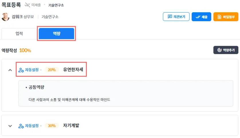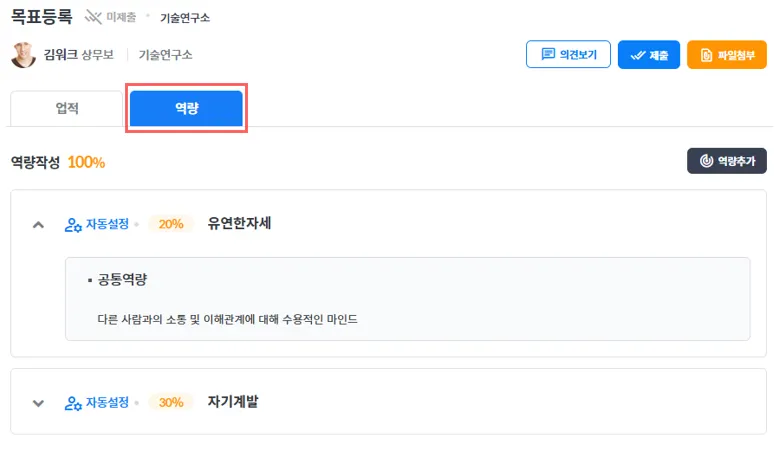 <목표등록 - 역량 샘플>
