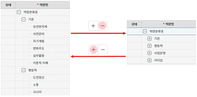 ① 상하위 역량리스트를 열고/닫기
