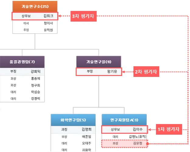 평가자 : 조직도를 기반으로 등록된 조직장, 상위조직장등