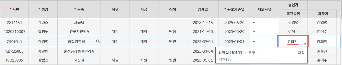(평가모듈은 사번과는 별도로 대상자ID가 키 값)