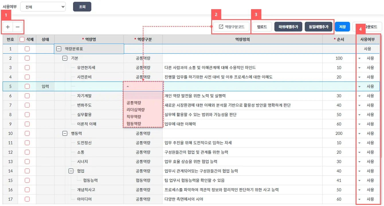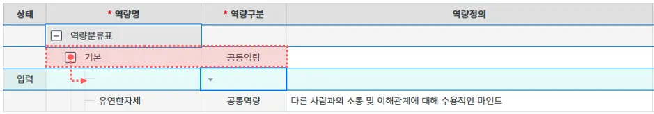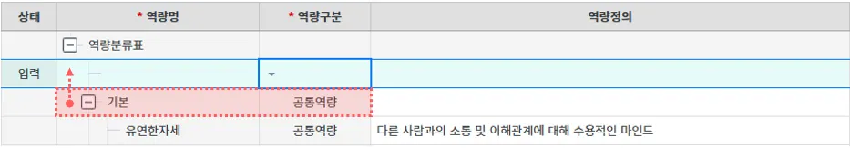 역량 : 역량사전을 기반으로 역량 항목 등록