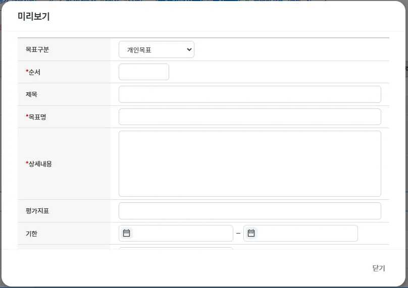 (ex. 목표등록 시작일과 최종 평가가 종료되는 시점을 등록)
