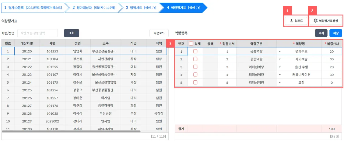 ③ 역량항목을 추가 등록 및 업로드