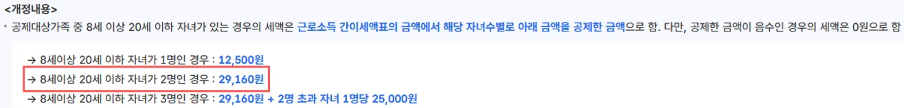 8세 이상 20세 이하 자녀 추가공제 2명 : 29,160원