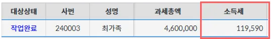 본인공제, 과세 금액 4,600,000원
