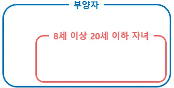 ‘부양자’가 더 큰 범위로 전체라고 이해하면되고, 그 안에 ‘8세 이상 20세 이하 자녀’가 있다는 개념