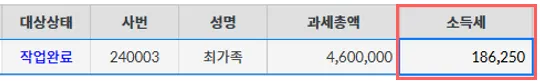소득세 계산 : 186,250원