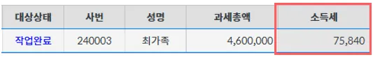 ⑤ 기간별정산 소득세 계산