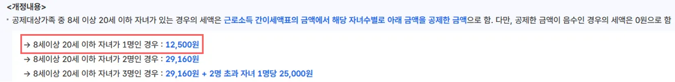 8세 이상 20세 이하 자녀 추가공제 1명 : 12,500원