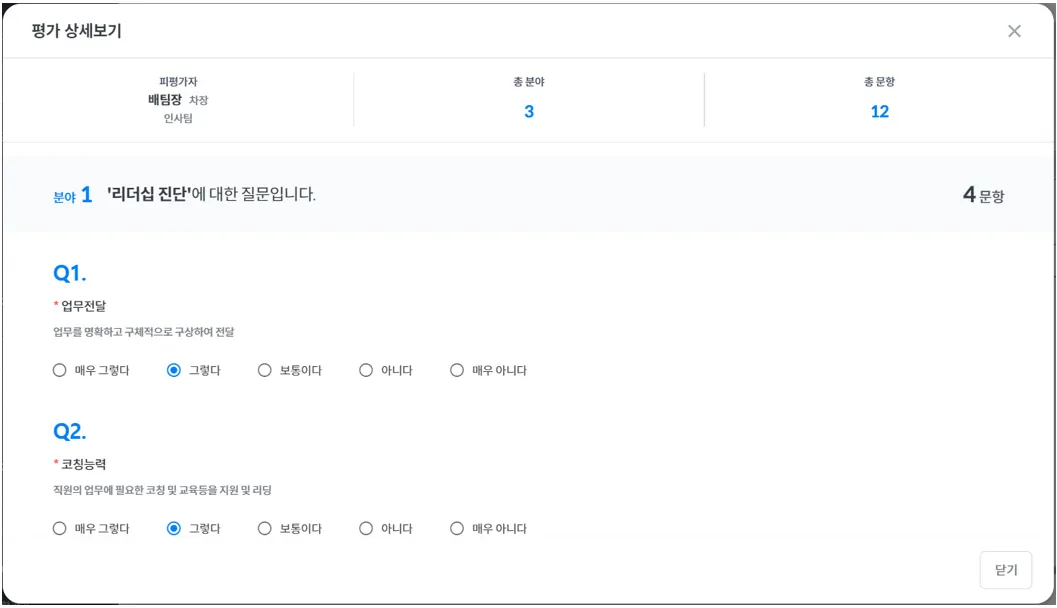 평가 완료 후 답변내용을 확인하는 팝업입니다.