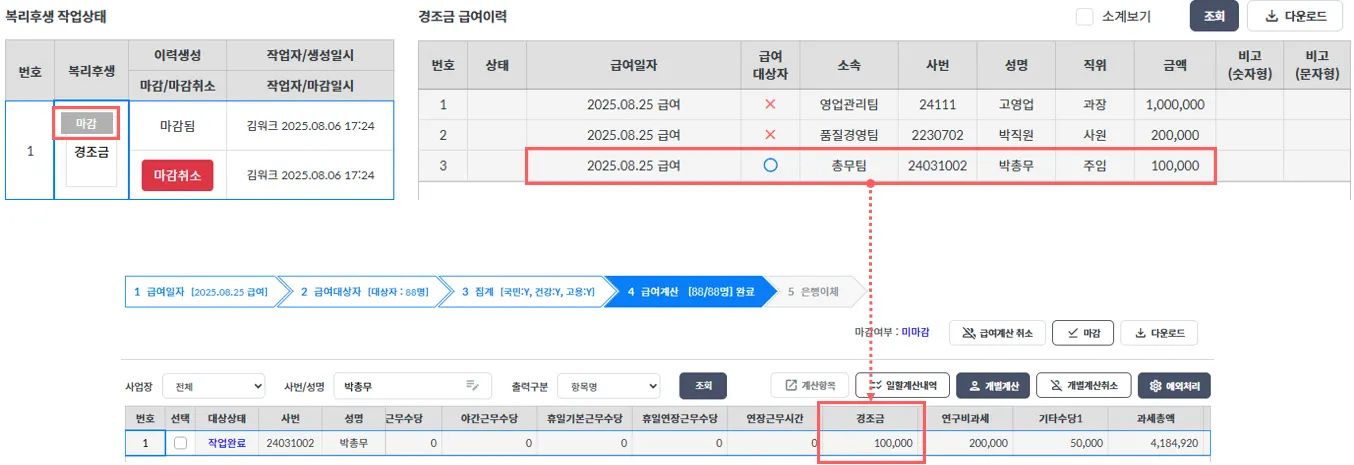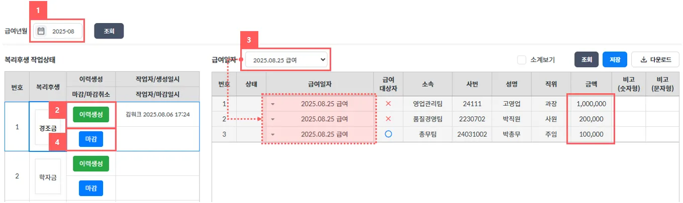 복리후생 업무 마감 및 급여 반영하는 내용입니다.
