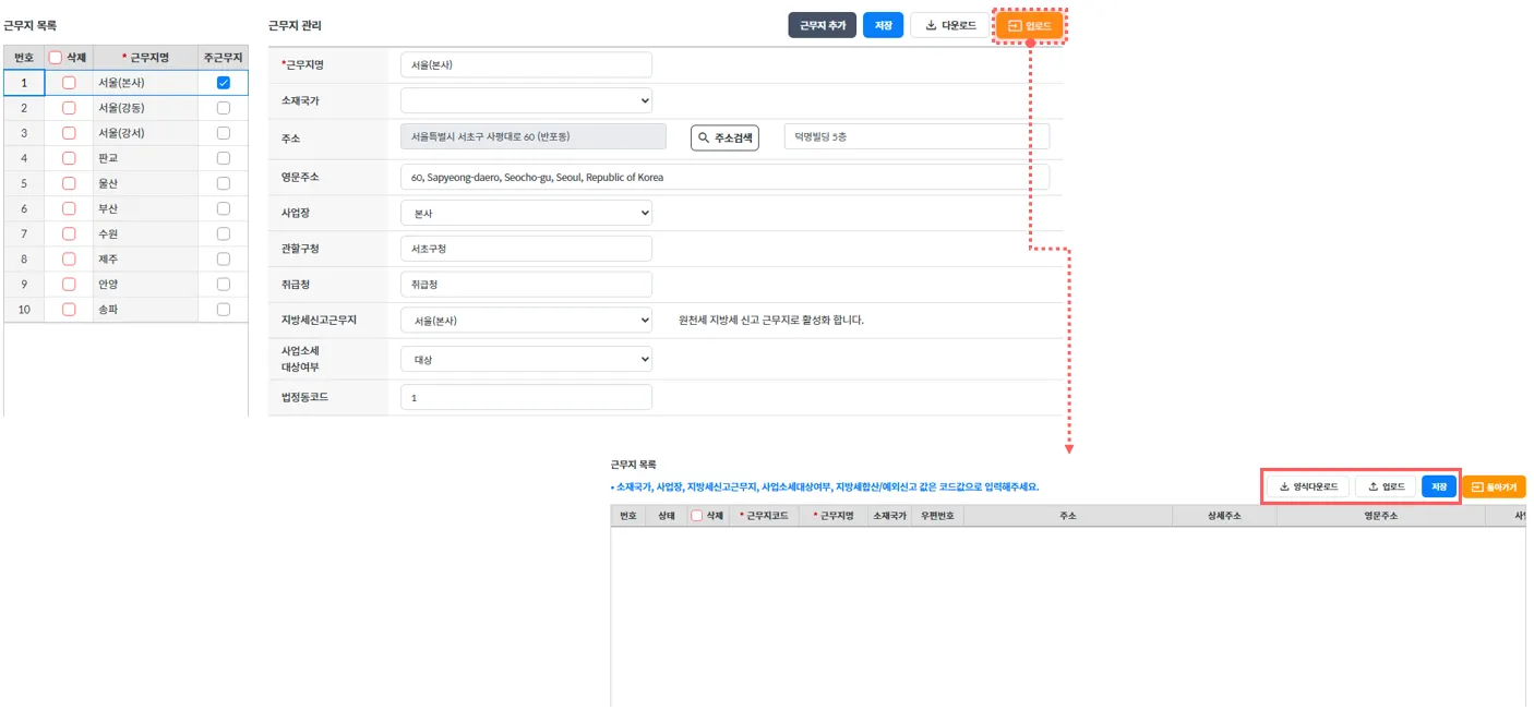 [인사/조직] 사업장, 근무지 일괄 업로드