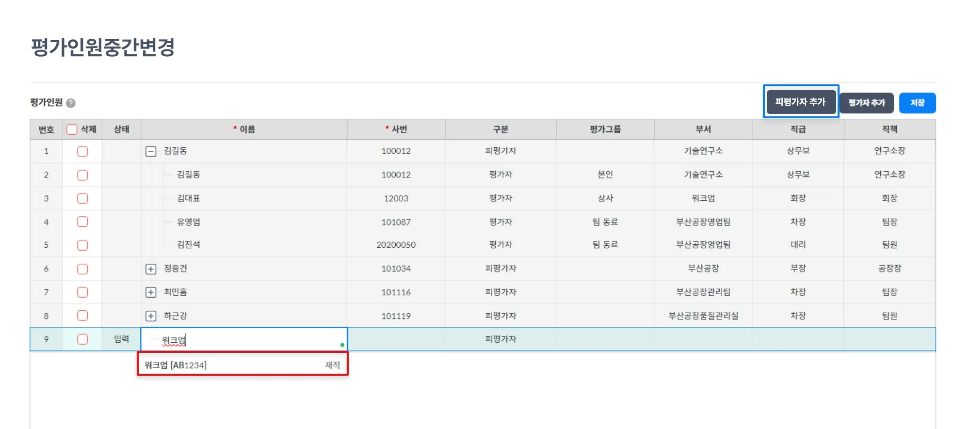 새로운 피평가자 대상자를 추가할 수 있습니다.