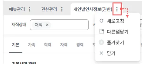 [화면 탭] 새로고침, 다른 탭 닫기, 즐겨찾기