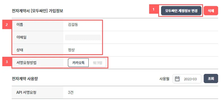 ① 최초 사용시에는 모두싸인 계정정보 변경을 통해 회원 가입
