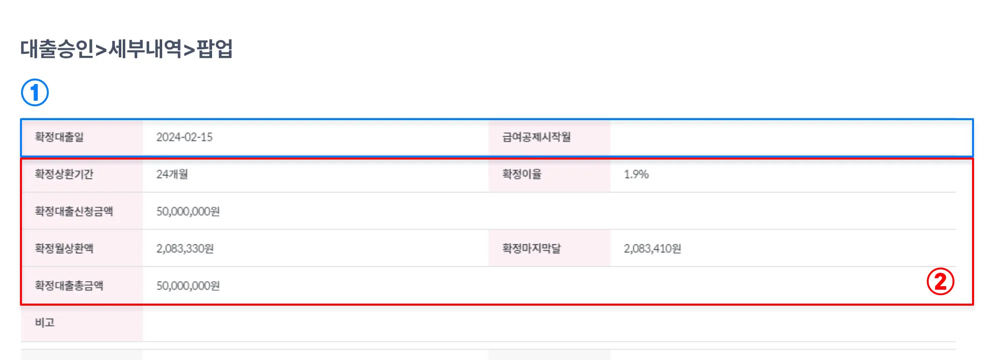② 신청 이후 담당자가 확정한 대출관련 정보 확인