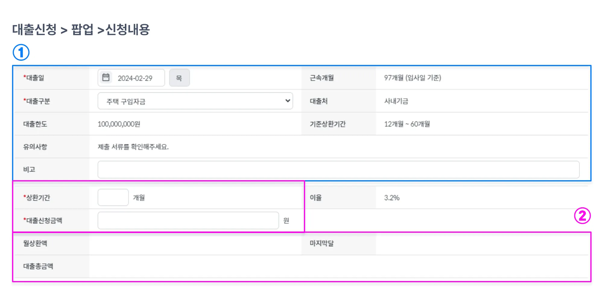 → 작성이후 월상환액과 마지막달 상환액은 시스템 자동 계산