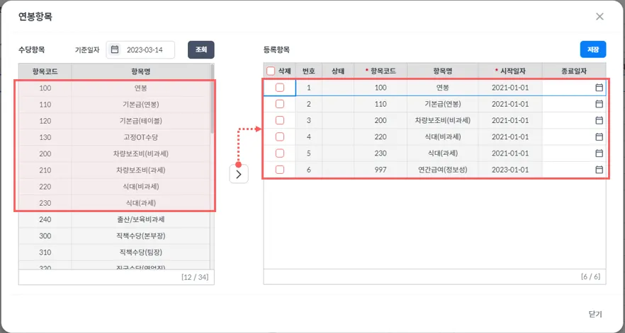 ② 연봉구성 항목이 될 수당들을 선택하는 팝업 호출