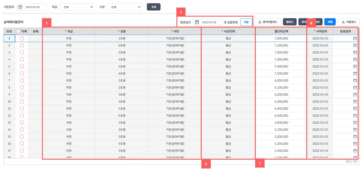 ④ 해당 호봉금액이 적용될 시작, 종료일을 관리