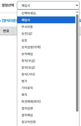 선택된 발령종류에 따라